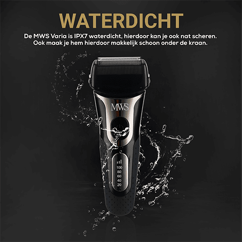 De MWS Varia is volledig IPX7 waterdicht, hierdoor kunt u zowel nat als droogscheren. Ook kunt u hierdoor het apparaat gemakkelijk schoon spoelen onder de kraan voor het wegspoelen van de haartjes.